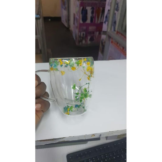 350ml Insulated Double Wall Glass Cup with Handle – Dried Flower Design