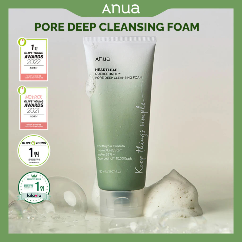 Anua Heartleaf Quercetinol Pore Deep Cleansing Foam is a gentle yet powerful facial cleanser designed to deeply cleanse and purify the skin. Infused with Heartleaf extract and Quercetinol, this foaming cleanser helps to remove impurities, excess oil, and makeup while calming and balancing the skin. Ideal for those with oily or combination skin, it unclogs pores, minimizes pores, and helps maintain a healthy, refreshed complexion without stripping the skin of its natural moisture.
