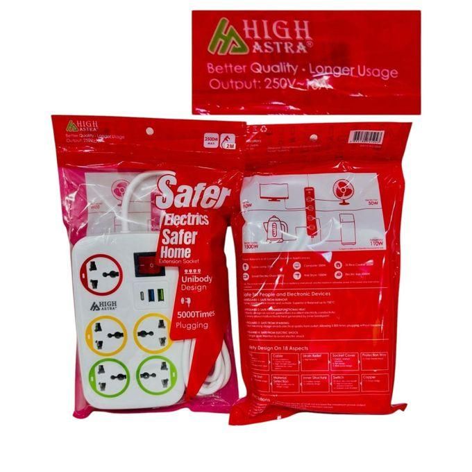 Power all your devices with one sleek, high-performance solution. The Astra 5-Way Extension is designed for modern households and offices, combining versatility, safety, and convenience in one compact unit. With 5 universal sockets, 2 USB ports, a high-speed Type-C port, and a built-in master switch, it handles everything from laptops to smartphones and more.