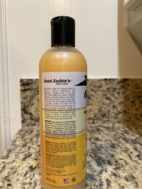 Aunt Jackie’s Oh So Clean! Moisturizing & Softening Shampoo is a rich, creamy shampoo specially formulated to gently cleanse natural curls, coils, and waves while infusing moisture and softness. Enriched with coconut oil, shea butter, and extra virgin olive oil, this sulfate-free formula removes buildup without stripping the hair of its natural oils.