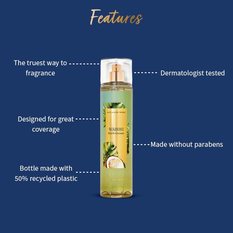 Overall, Bath & Body Works Waikiki Beach Coconut Fine Fragrance Mist is the perfect fragrance for anyone who loves the warm, tropical scent of coconut with a refreshing twist. Its long-lasting, light, and energizing formula makes it the perfect addition to your daily routine for a burst of sunshine and tropical relaxation.