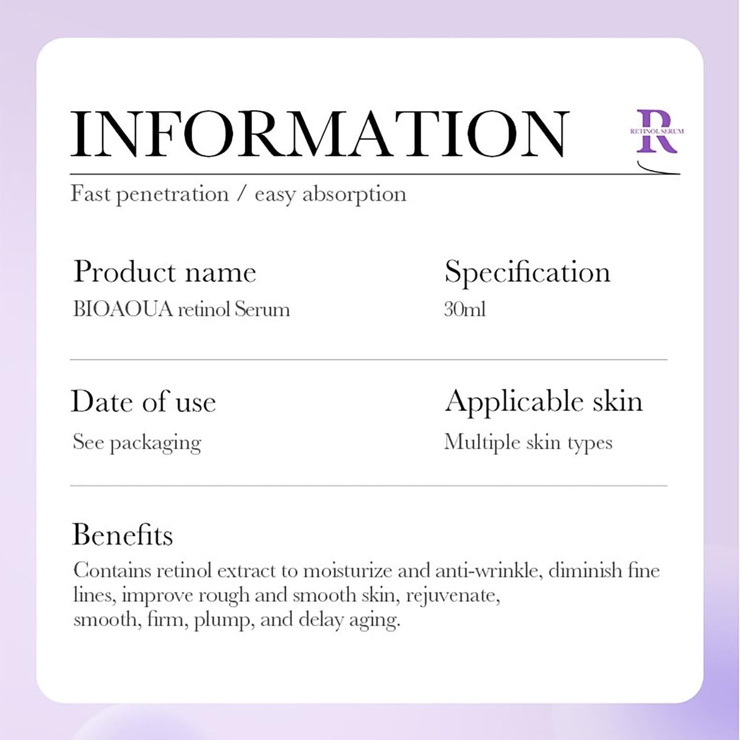 Reveal smoother, younger-looking skin with BIOAQUA Retinol Facial Serum—your essential step toward radiant, rejuvenated skin.