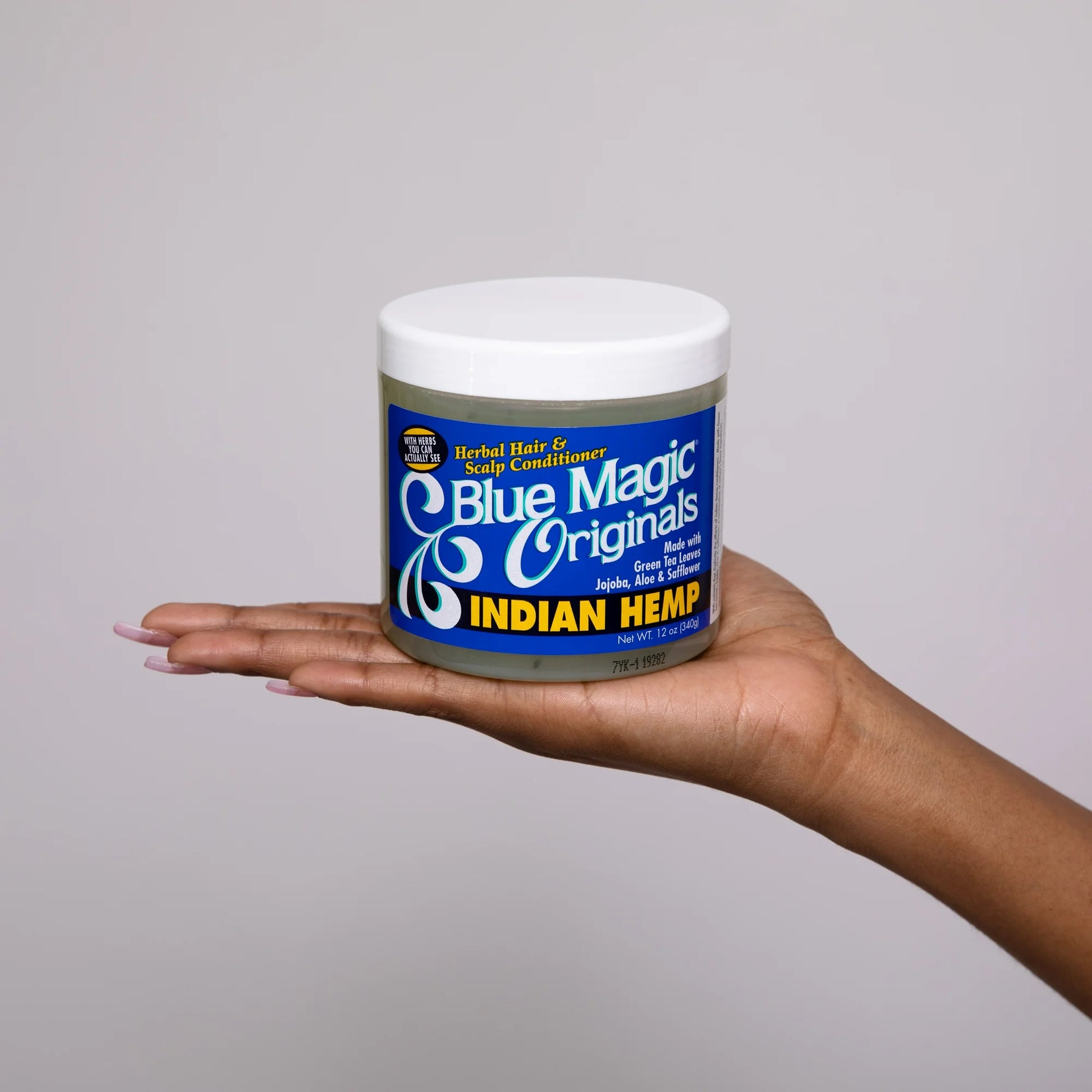 Blue Magic Originals Indian Hemp is a nourishing hair and scalp conditioner formulated to promote healthier, stronger hair. Enriched with Indian hemp, jojoba oil, and a blend of natural herbs, this treatment helps condition the scalp, reduce dryness, and add lasting moisture and shine to the hair. Ideal for all hair types, it supports natural hair growth while keeping the scalp healthy and balanced.