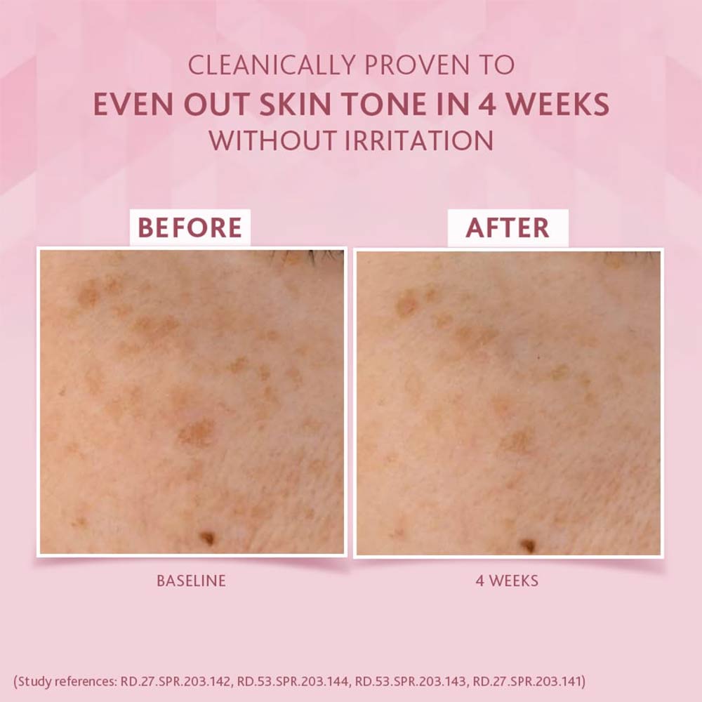 Visibly brightens and evens out skin tone over time