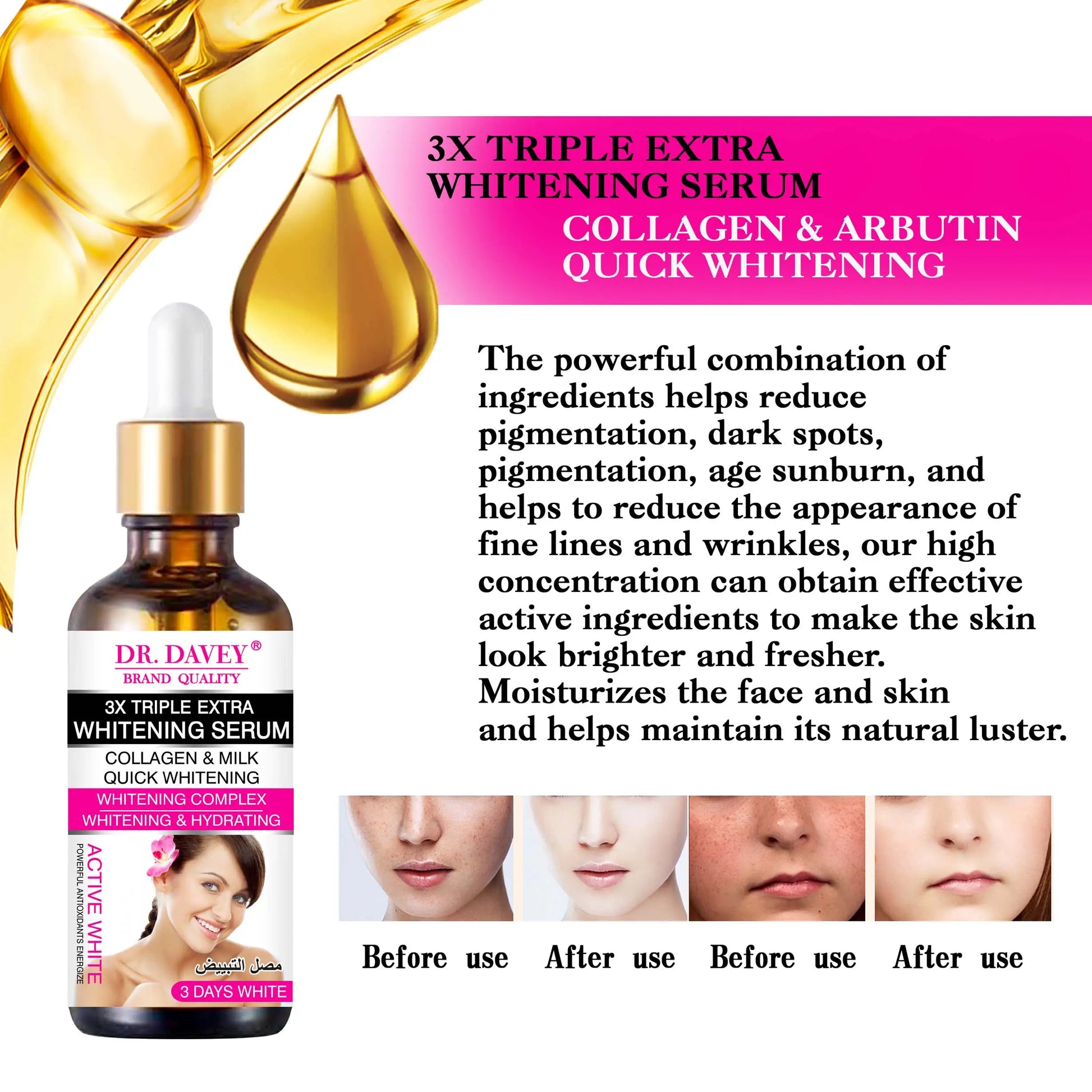 Achieve visibly brighter and firmer skin with Dr. Davey Collagen & Milk Quick Whitening Serum—your daily dose of glow.