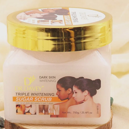 Dr. Davey Dark Skin Triple Brightening Sugar Scrub is a powerful exfoliating treatment designed to brighten and even out skin tone while providing deep hydration. Formulated with a blend of natural sugar crystals and brightening agents, this scrub gently removes dead skin cells, revealing smoother, more radiant skin.