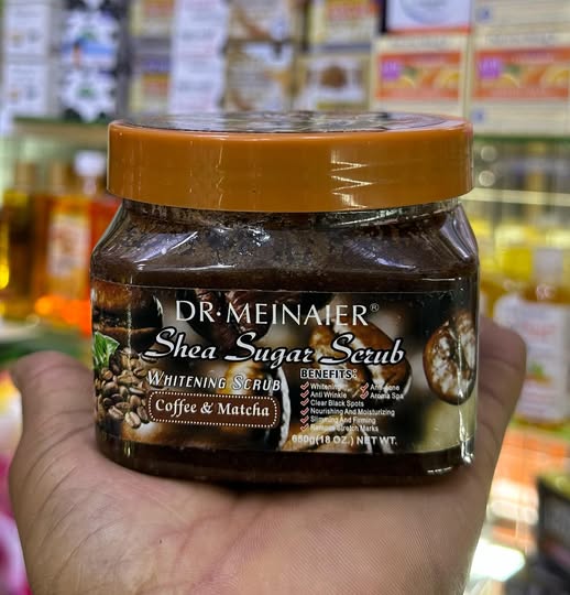 Description: Dr. Meinaier Shea Sugar Whitening Scrub combines the power of natural coffee, matcha, and shea butter to deliver a luxurious exfoliating experience. This 650g scrub gently removes dead skin cells, unclogs pores, and helps brighten your skin, leaving it soft, smooth, and glowing. The unique blend of ingredients works together to fight dullness, uneven skin tone, and signs of aging while deeply moisturizing the skin.