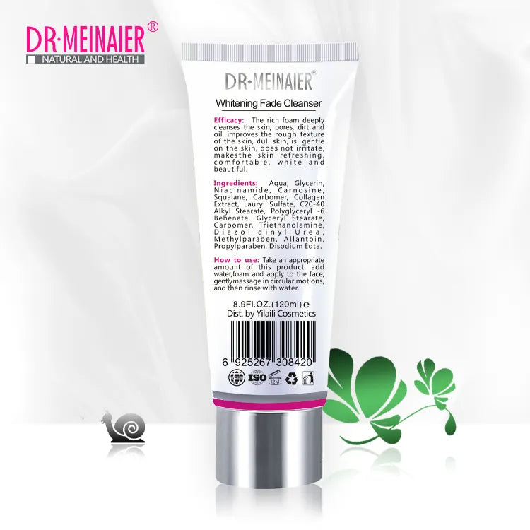 Dr. Meinaier Snail Whitening Fade Spots Facial Cleanser is a gentle yet effective cleanser formulated with the powerful benefits of snail mucin to brighten, hydrate, and cleanse the skin. Designed to target dark spots, hyperpigmentation, and uneven skin tone, this facial cleanser helps to reveal a clearer, more radiant complexion with regular use.