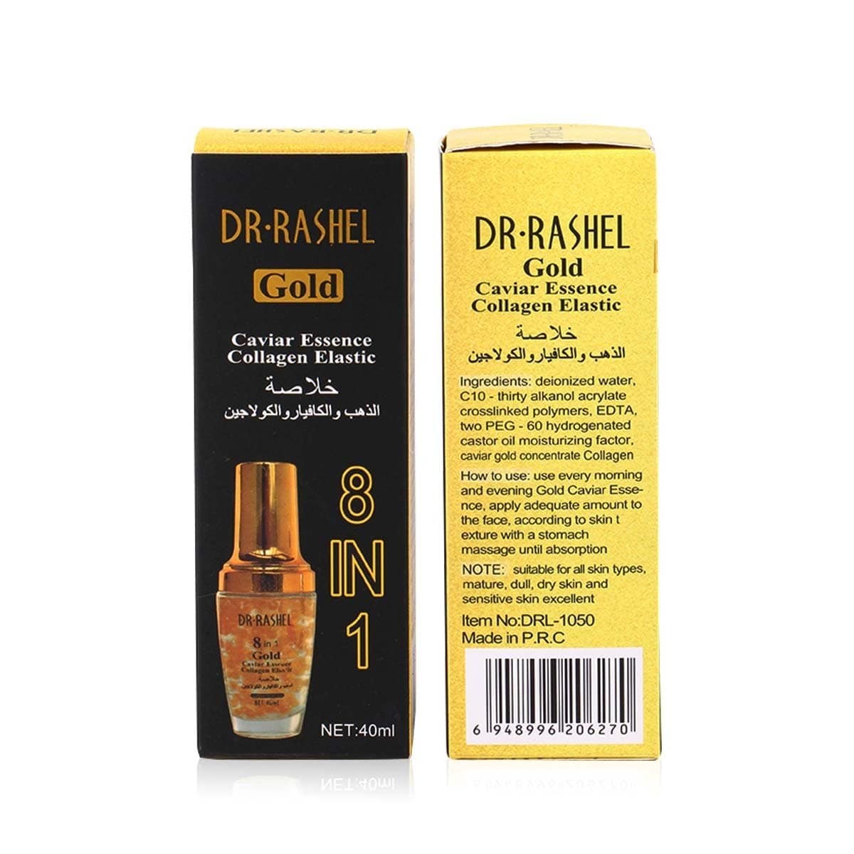 Indulge in the luxurious Dr.Rashel Gold Caviar Essence & Collagen Elastin Serum 8 in 1 Face Serum and experience visibly smoother, firmer, and radiant skin with every use.