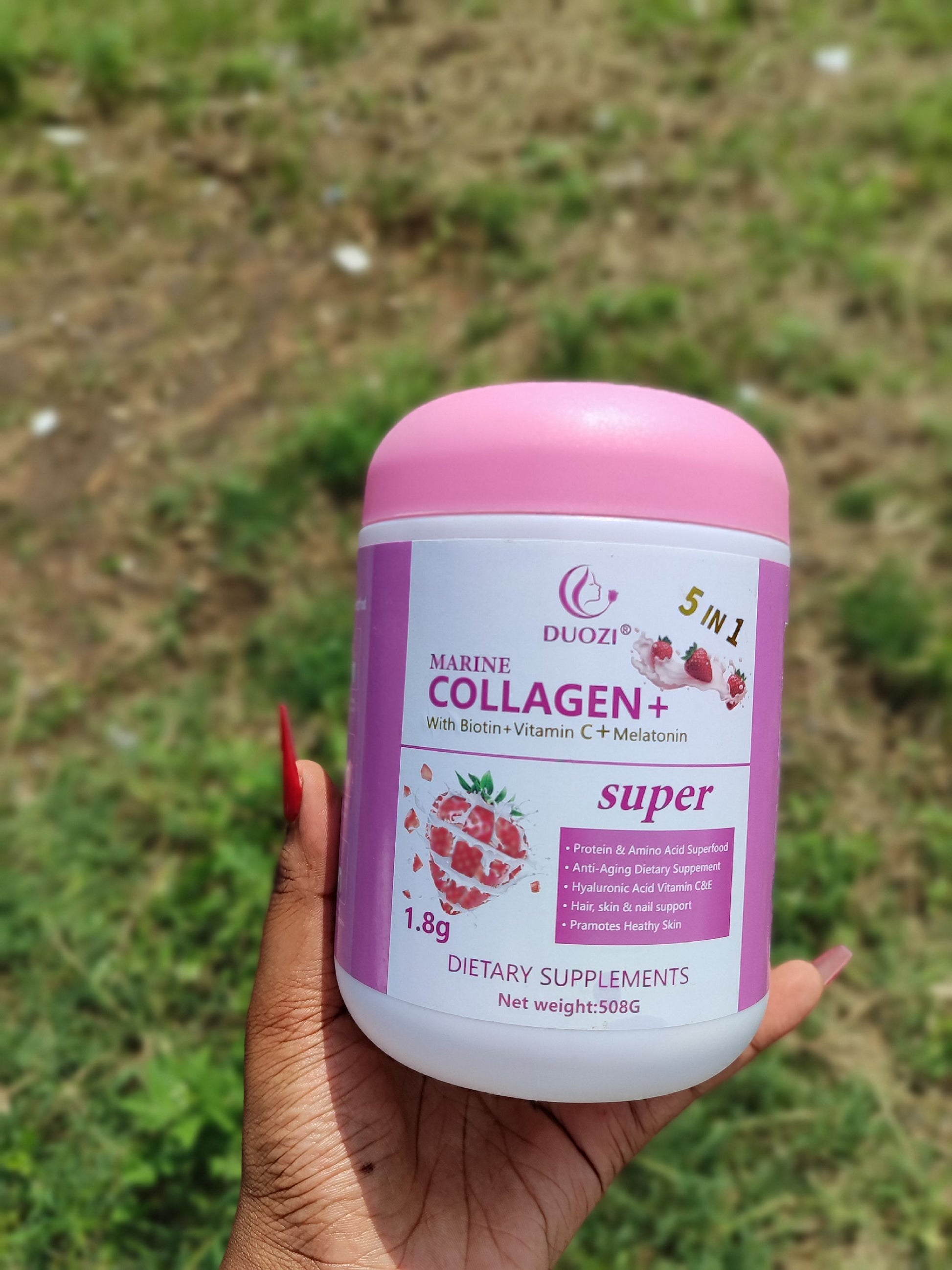 Restore your glow and recharge your body with Duozi Marine Collagen + Biotin + Vitamin C + Melatonin, a powerful 4-in-1 dietary supplement designed to nourish your skin, support restful sleep, and boost overall health. With 508g per container, this comprehensive blend offers a long-lasting supply of essential nutrients to promote beauty and wellness from the inside out.