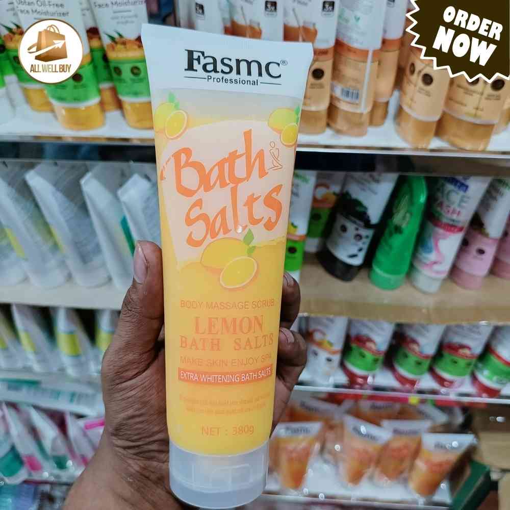 FASMC Lemon Bath Salts Body Massage Scrub is ideal for anyone looking to brighten their skin, smooth rough patches, and enjoy a relaxing spa-like experience. Perfect for all skin types, this scrub delivers a refreshing cleanse, leaving your skin feeling revitalized, smooth, and glowing.