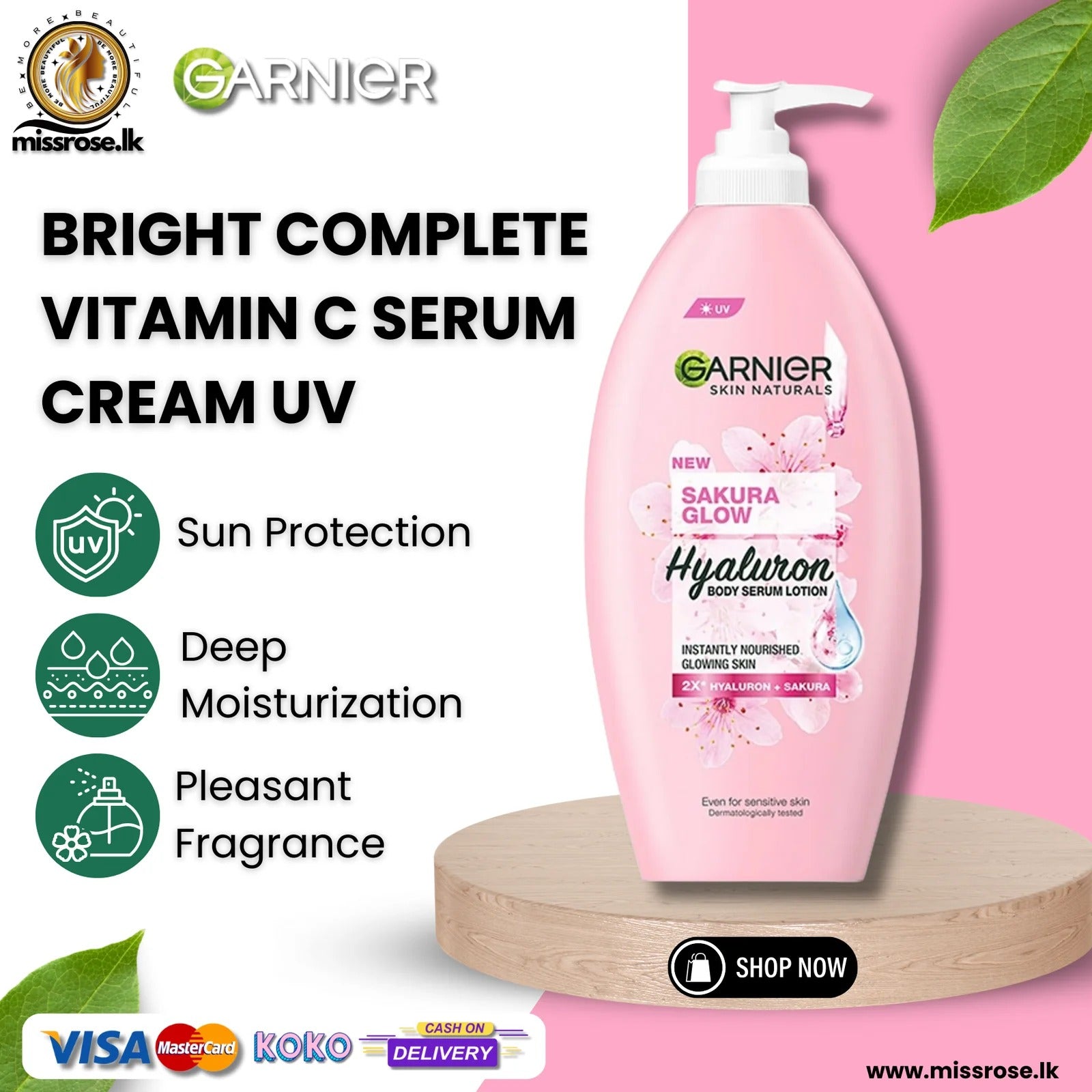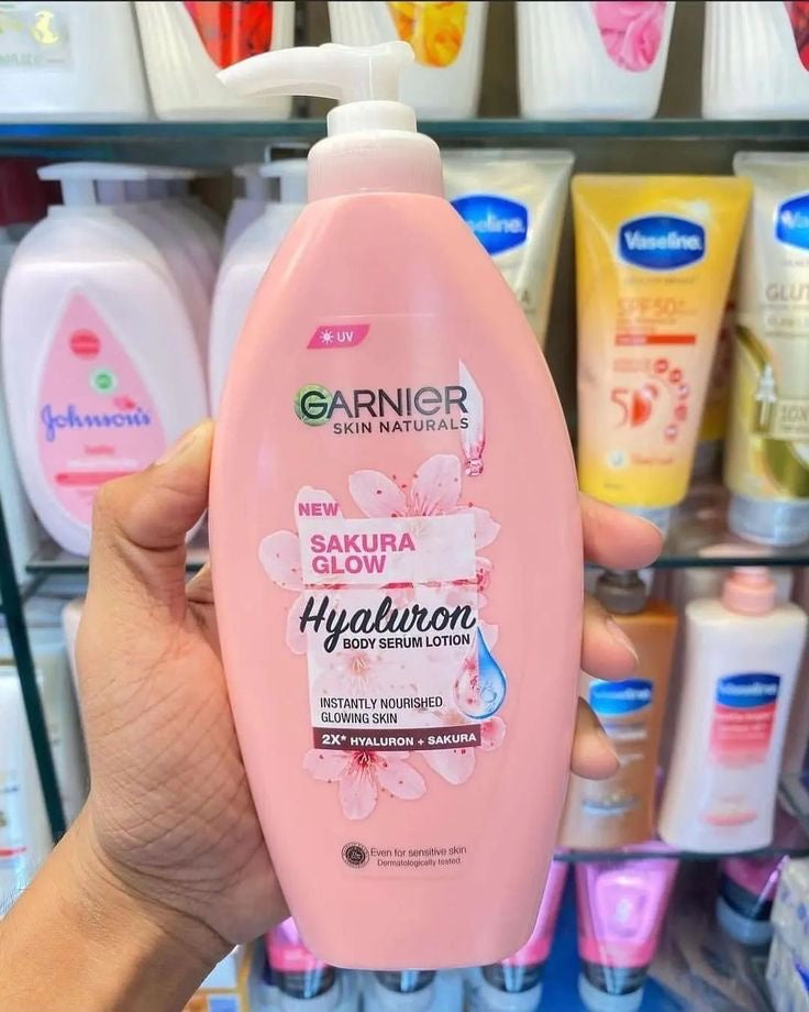 Experience the ultimate hydration and radiant glow with Garnier Sakura Glow Hyaluron Body Serum Lotion. Infused with Sakura Extract and Hyaluronic Acid, this lightweight serum lotion delivers deep moisture and revitalizes dull skin for a smooth, luminous finish. Perfect for daily use, it absorbs quickly without stickiness, leaving your skin soft, supple, and beautifully glowing.