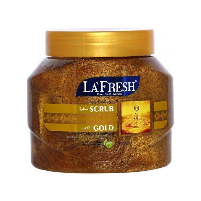 Description: La Fresh GOLD Body Scrub is a luxurious exfoliating treatment designed to reveal soft, smooth, and radiant skin. Infused with finely ground natural exfoliants and enriched with nourishing gold particles, this scrub gently sloughs off dead skin cells, impurities, and rough patches while promoting skin regeneration. The combination of gold and natural ingredients works to brighten the skin, improve texture, and enhance its natural glow. Ideal for all skin types, this body scrub provides a pampering spa-like experience, leaving your skin feeling rejuvenated, silky, and glowing.