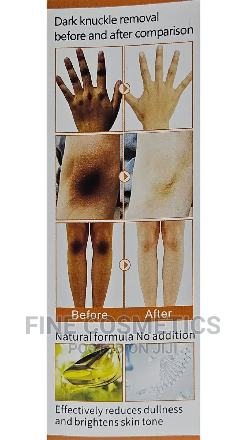 - Lightens Dark Knuckles: Effectively fades dark knuckles, elbows, and knees, restoring a more even skin tone.