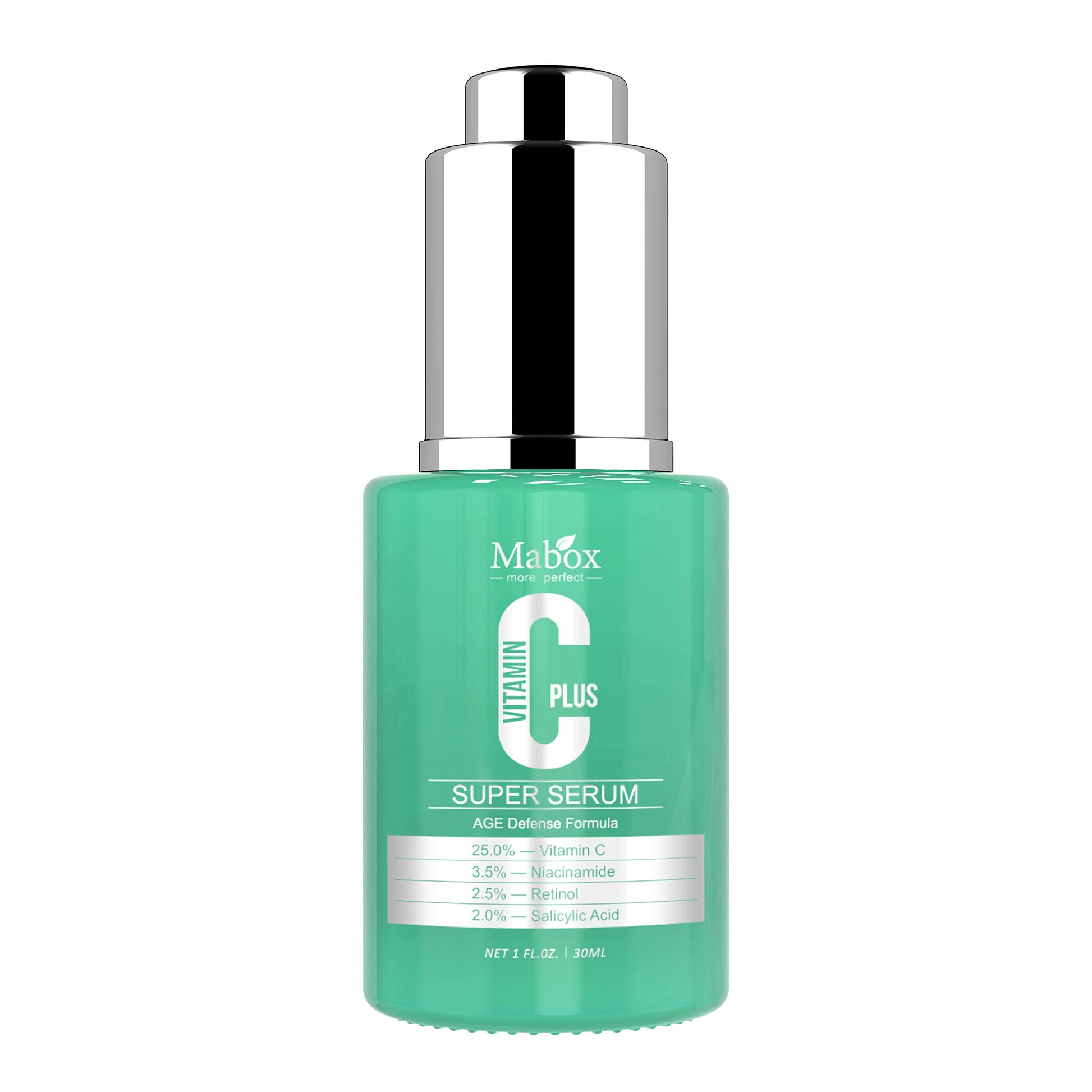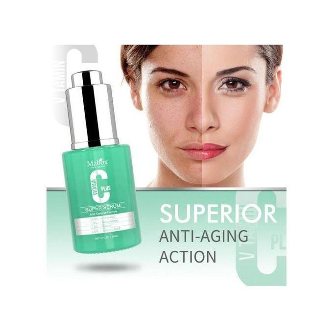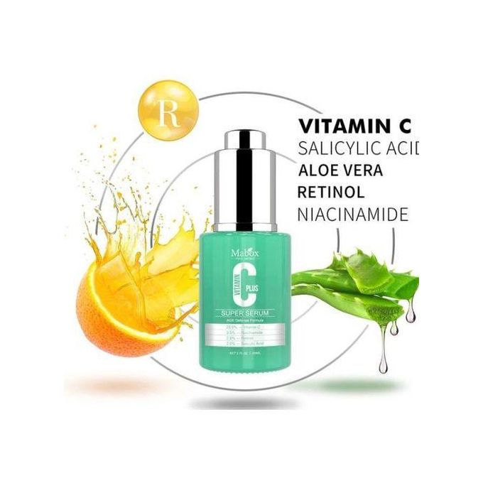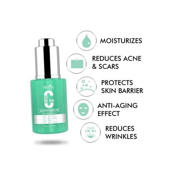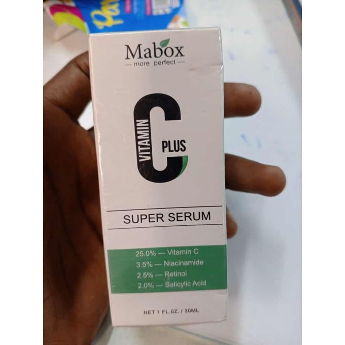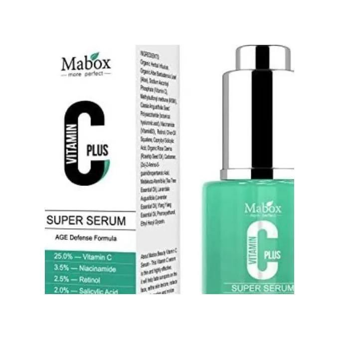 Mabox Vitamin C Plus Super Serum is a high-performance skincare formula designed to brighten dull skin, reduce the appearance of fine lines, and even out skin tone. Enriched with a potent blend of Vitamin C, Hyaluronic Acid, and Vitamin E, this antioxidant-rich serum works to protect the skin from environmental damage, boost collagen production, and leave your complexion looking radiant, smooth, and youthful.
