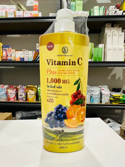 Perfect Skin Lady Vitamin C Plus Acerola Cherry Extract & Grape Seed Extract Lotion is a luxurious skincare product designed to brighten, hydrate, and rejuvenate your skin. Infused with the powerful antioxidants of Vitamin C, Acerola Cherry Extract, and Grape Seed Extract, this lotion helps to promote an even skin tone, reduce the appearance of dark spots, and protect your skin from environmental damage. Below is a detailed description of its key features and benefits: