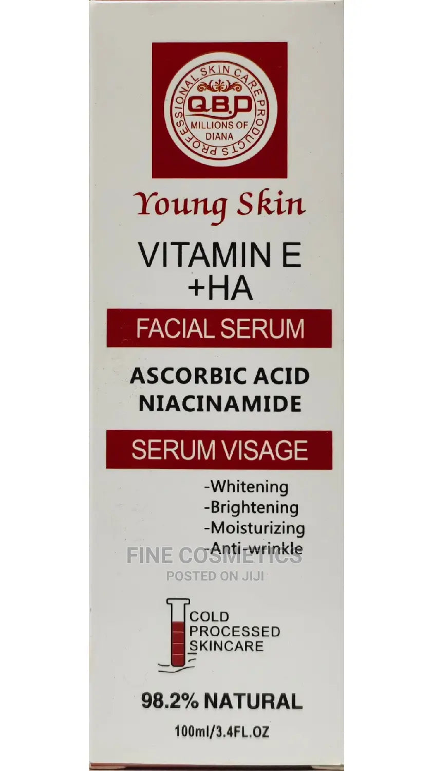 QBD Young Skin Vitamin E Facial Serum with Niacinamide is a revitalizing skincare product designed to nourish, protect, and enhance the appearance of your skin. This serum combines the powerful benefits of Vitamin E and Niacinamide (Vitamin B3) to hydrate, brighten, and improve skin texture, leaving you with a smooth, radiant, and youthful complexion.