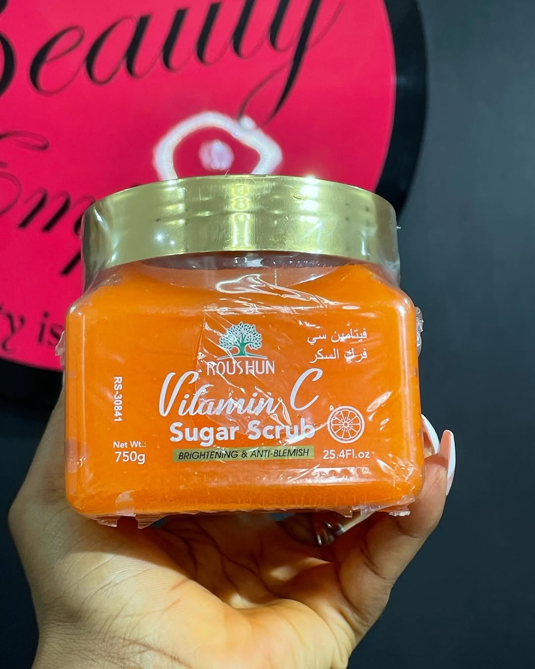 Description: Roushun Vitamin C Sugar Scrub is a refreshing and rejuvenating skincare treatment designed to exfoliate, brighten, and nourish your skin. Infused with the power of vitamin C, this scrub helps to fade dark spots, even out skin tone, and promote a radiant, youthful glow. The natural sugar crystals gently exfoliate the skin, removing dead cells and impurities, while vitamin C works to boost collagen production and protect the skin from environmental stressors. This scrub also contains moisturizing ingredients that hydrate and soften the skin, leaving it feeling smooth, refreshed, and revitalized. Ideal for all skin types, it’s perfect for anyone looking to brighten and rejuvenate their complexion while enjoying a spa-like experience.