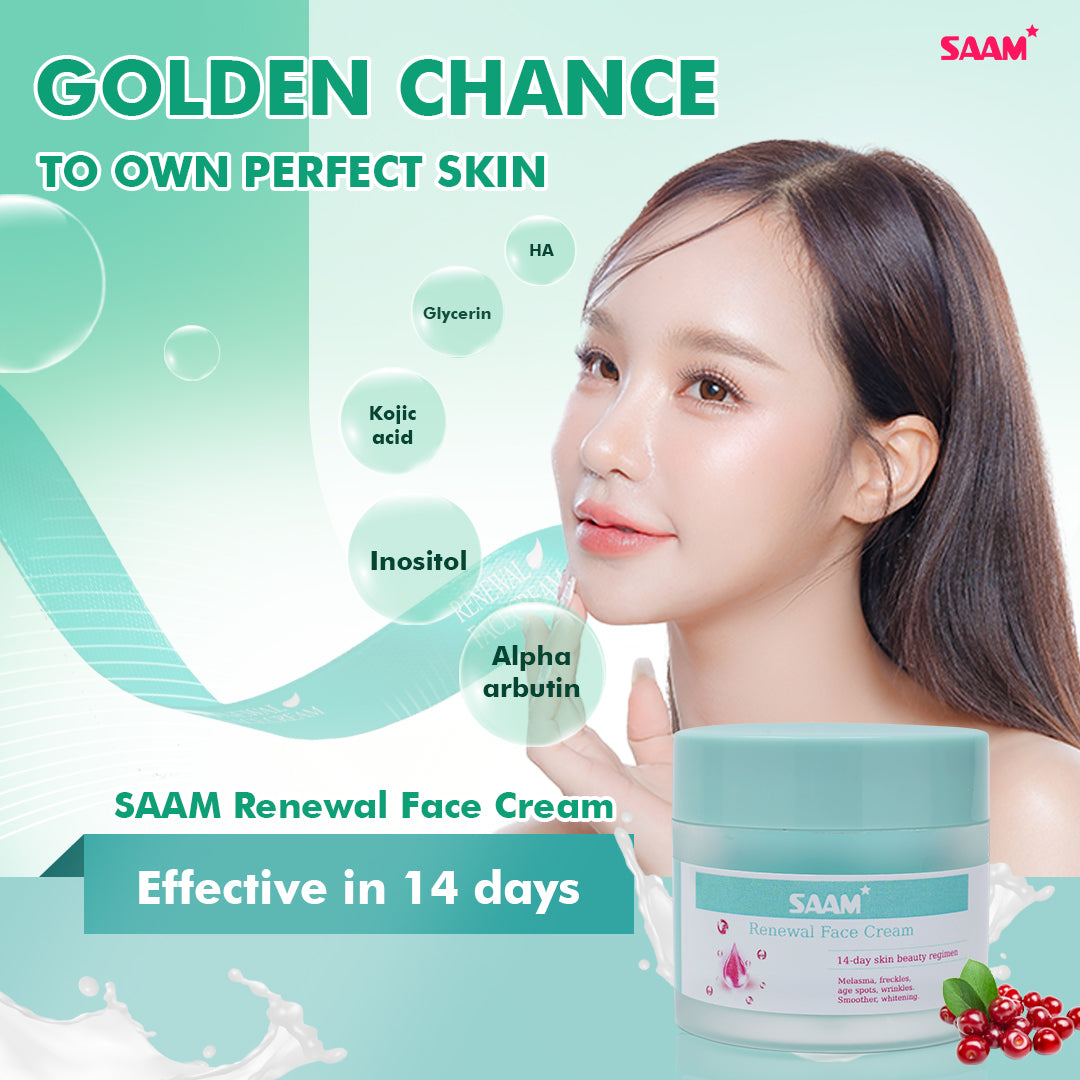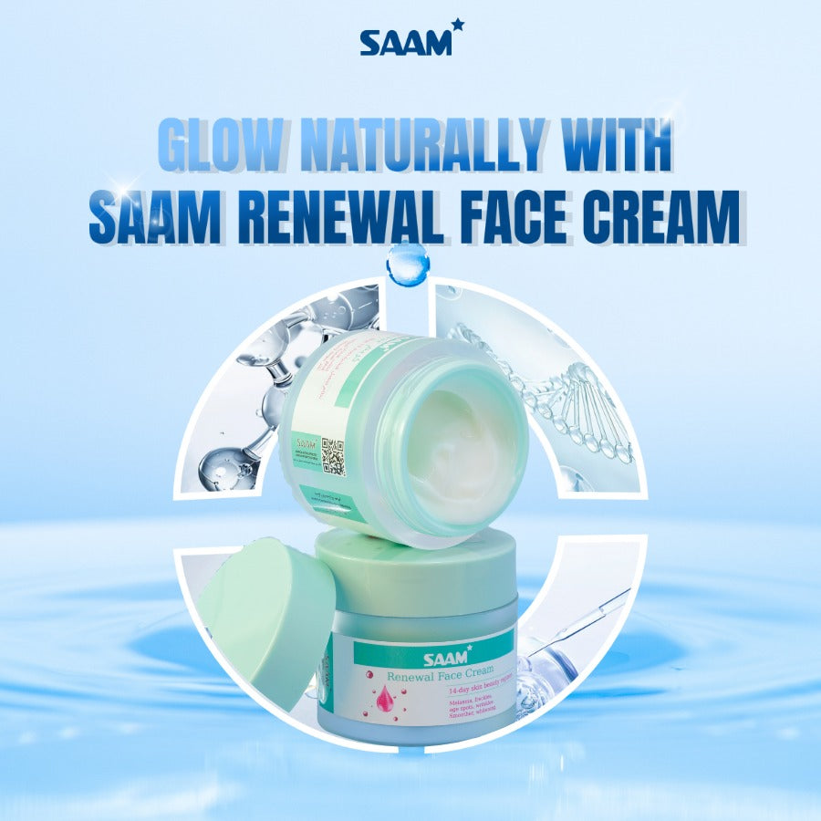 How to Use: After cleansing and toning, apply a small amount of Saam Renewal Face Cream to your face and neck. Gently massage in upward motions until fully absorbed. Use twice daily—morning and night—for best results.
