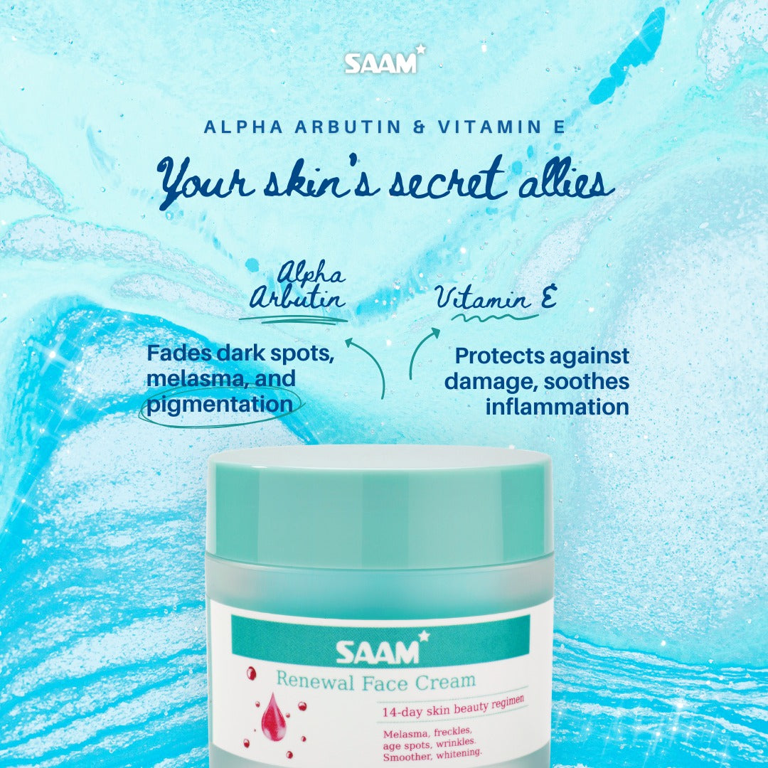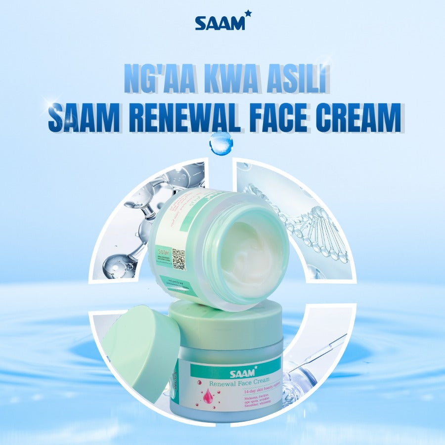 How to Use: After cleansing and toning, apply a small amount of Saam Renewal Face Cream to your face and neck. Gently massage in upward motions until fully absorbed. Use twice daily—morning and night—for best results.