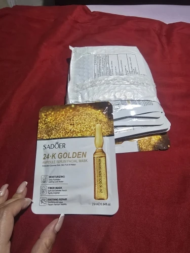 SADOER 24K Gold Vitamin C Hyaluronic Acid Ampoule Face Mask delivers a pampering, intensive sheet-mask experience—aiming to hydrate, brighten, and add shimmer with every single-use dose. While ingredients like Vitamin C, hyaluronic acid, and niacinamide are recognized skincare actives, the presence of gold and fragrance may raise caution for some users. Perform a patch test initially and manage expectations regarding long-term efficacy.