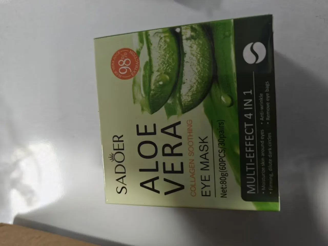 SADOER Aloe Vera Collagen Soothing & Firming Eye Masks provide targeted treatment for the delicate skin around the eyes. Infused with soothing aloe vera and collagen, these masks hydrate, firm, and reduce puffiness and fine lines, leaving the eye area refreshed and revitalized.