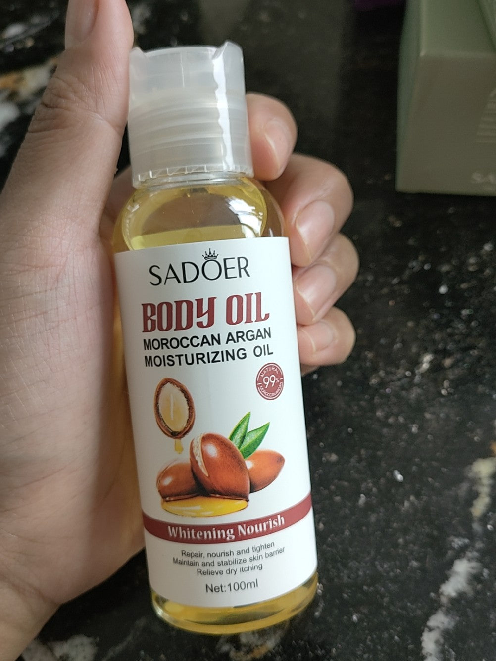 Sadoer Body Oil Moroccan Argan Moisturizing Oil is ideal for anyone seeking deep hydration, nourishment, and a glowing complexion. With its enriching blend of Moroccan Argan oil, this luxurious body oil revitalizes and repairs your skin, leaving it feeling silky smooth, rejuvenated, and radiant. Perfect for daily use, it’s an essential addition to your skincare routine for healthy, hydrated skin.