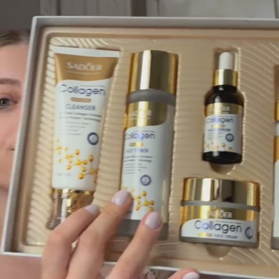 Give your skin the complete care it deserves with the SADOER Collagen Set — a full skincare routine designed to nourish, firm, and revitalize your complexion. Enriched with powerful collagen peptides, this multi-step set helps to boost skin elasticity, reduce fine lines, and deeply hydrate, leaving your skin smoother, tighter, and more youthful-looking.