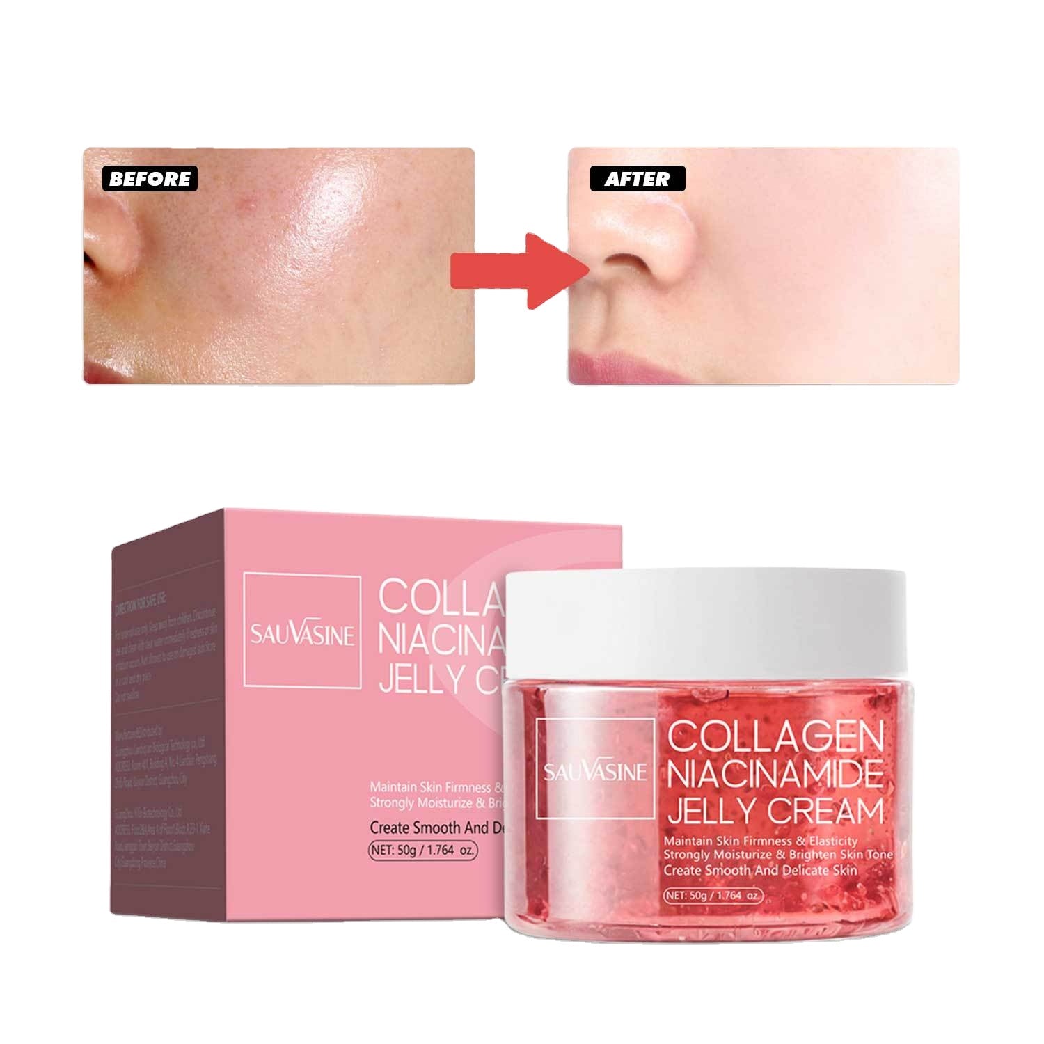 Give your skin a boost of hydration and radiance with Sauvasine Collagen Niacinamide Jelly Cream. This refreshing jelly-textured cream combines the power of collagen to improve elasticity and firmness with niacinamide to brighten, smooth, and refine skin tone. Lightweight and fast-absorbing, it deeply moisturizes without greasiness, leaving your skin feeling plump, soft, and revitalized all day.