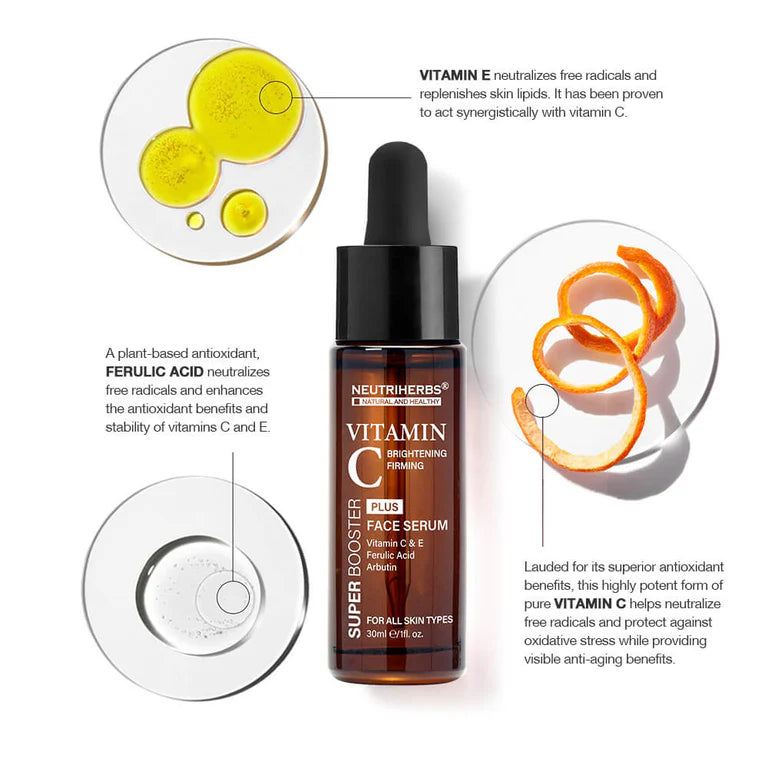 How to Use: Apply a few drops of Super Booster Vitamin C Plus Brightening Serum onto clean, dry skin. Gently massage in circular motions over your face and neck until fully absorbed. Use daily, both in the morning and evening, for optimal results. Follow with a moisturizer and sunscreen (during the day) for added protection.