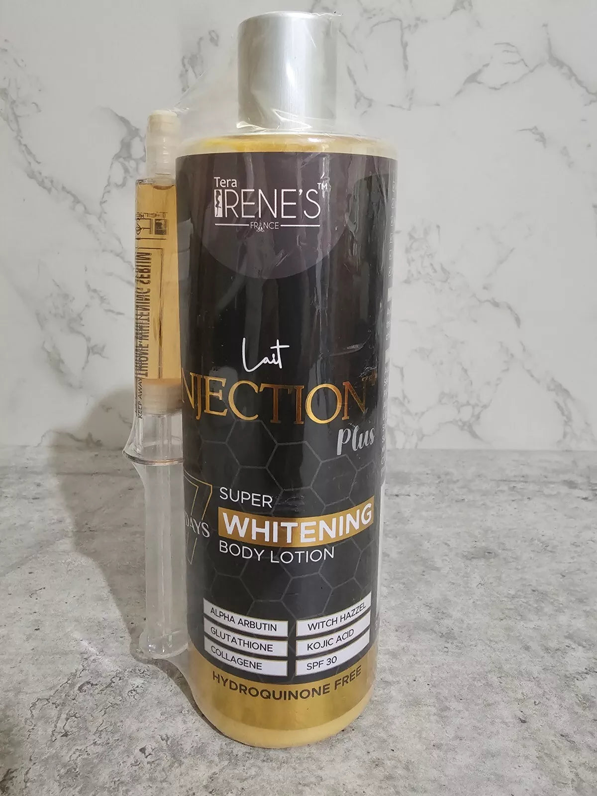 Experience intense skin brightening and deep hydration with Tera Irene’s Lait Injection Super Whitening Body Lotion — a concentrated body care formula designed to dramatically improve skin tone, clarity, and smoothness. Ideal for those seeking a visibly lighter, more radiant complexion.