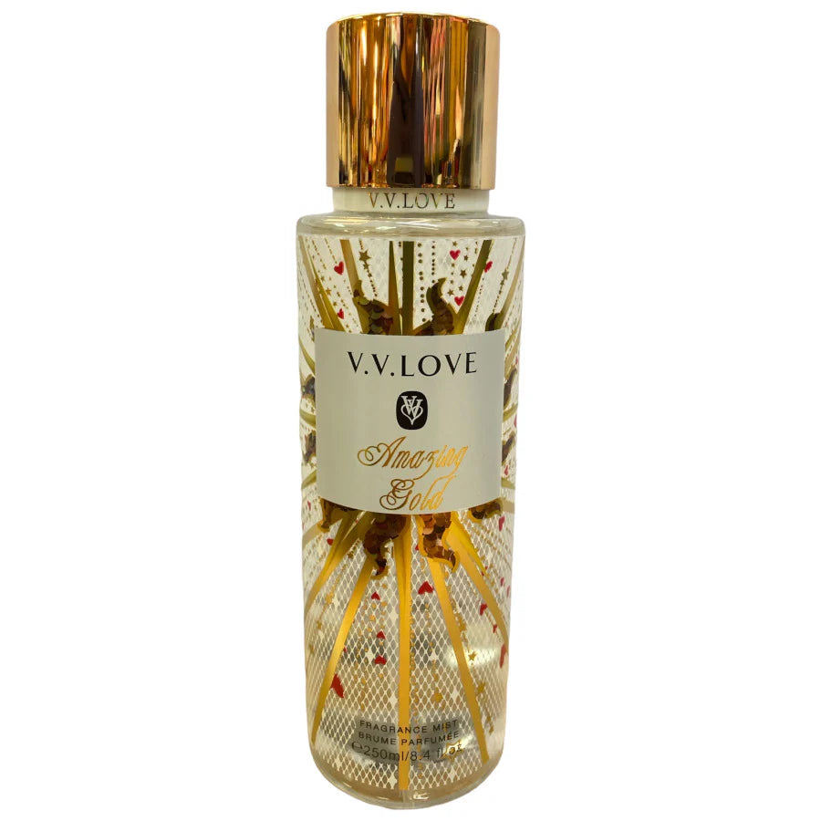Overall, V.V. Love Amazing Gold Fragrance Mist is a warm, luxurious, and sophisticated body mist that envelops you in a soft yet captivating fragrance. With its combination of sweet, floral, and warm notes, this mist is the perfect way to add a touch of elegance and confidence to your everyday routine.