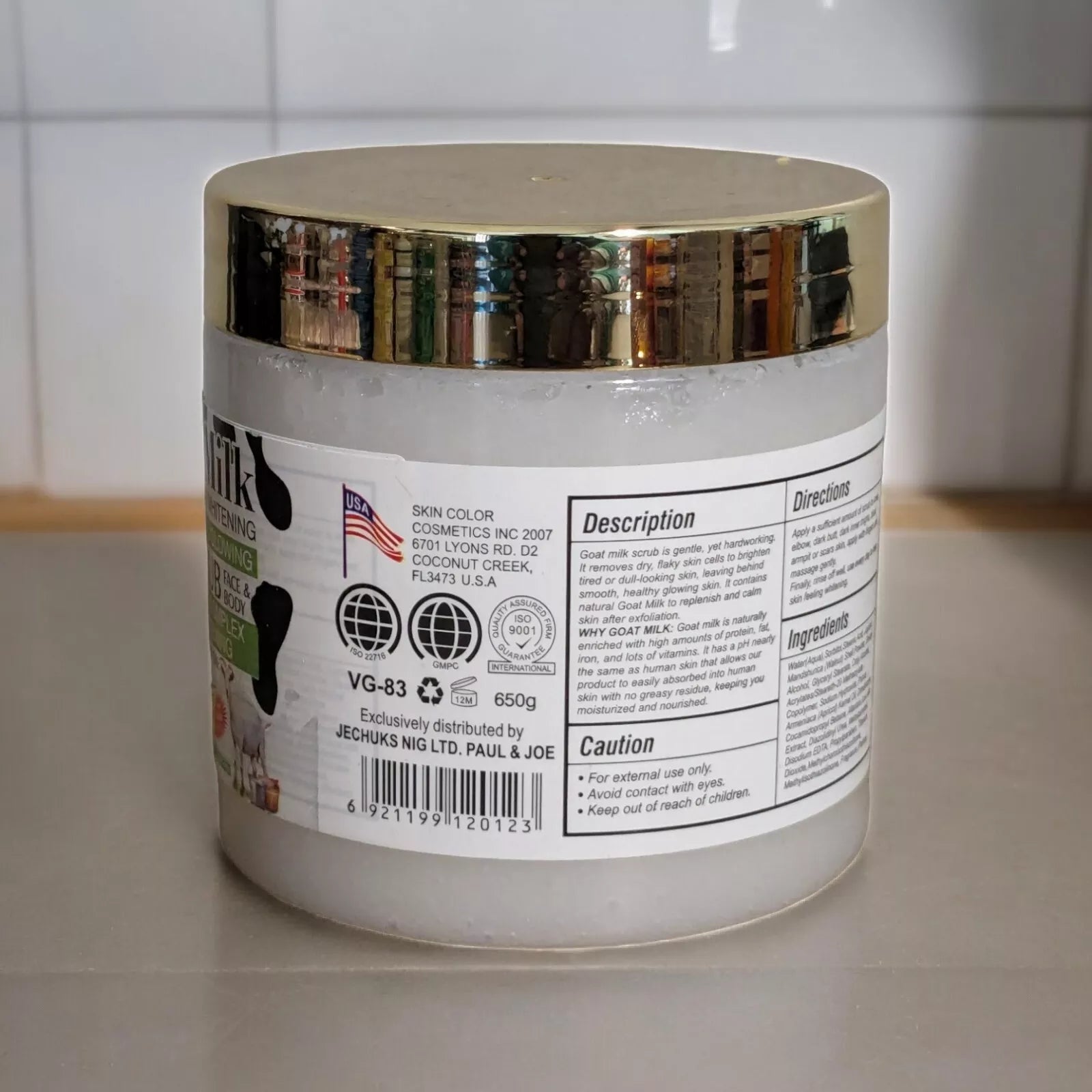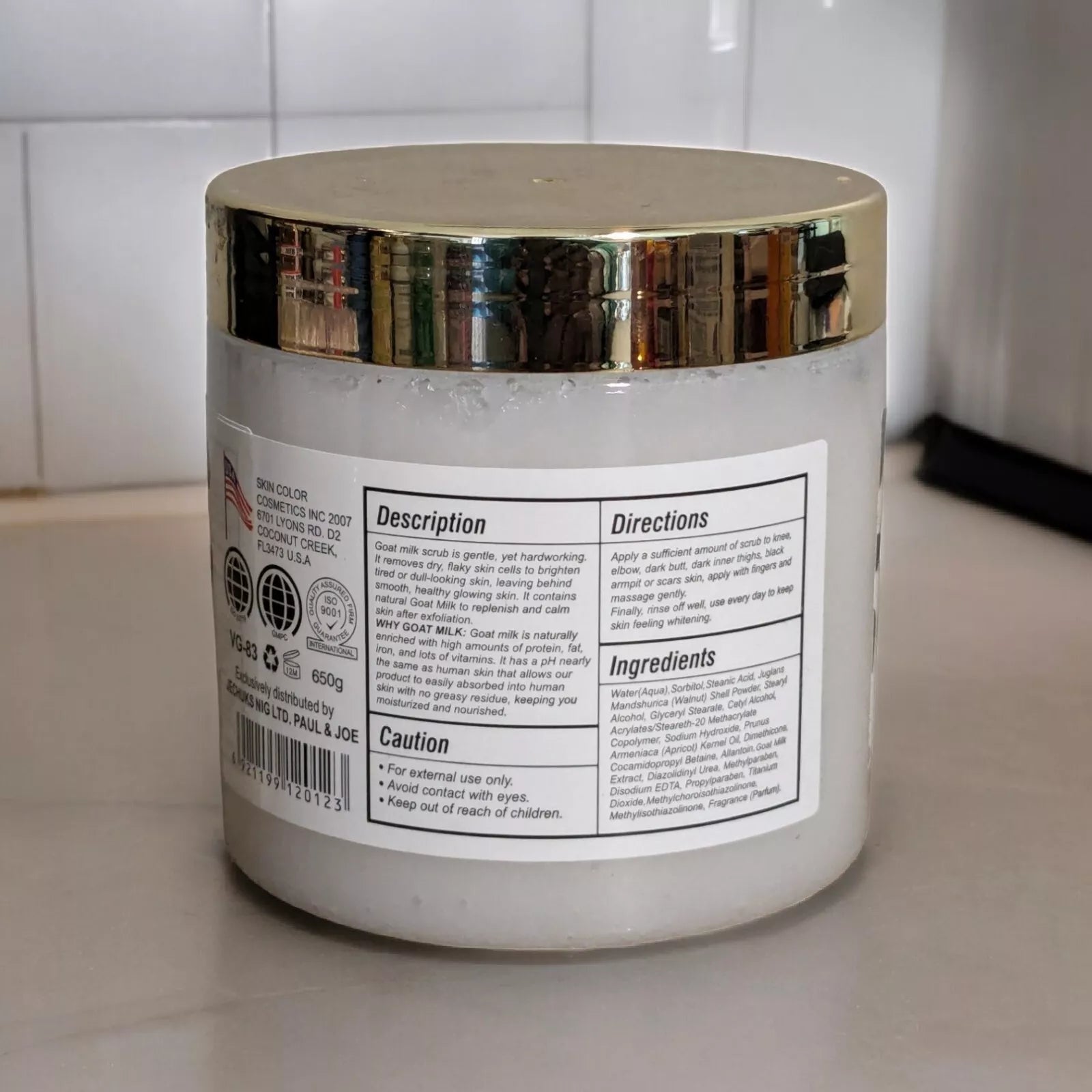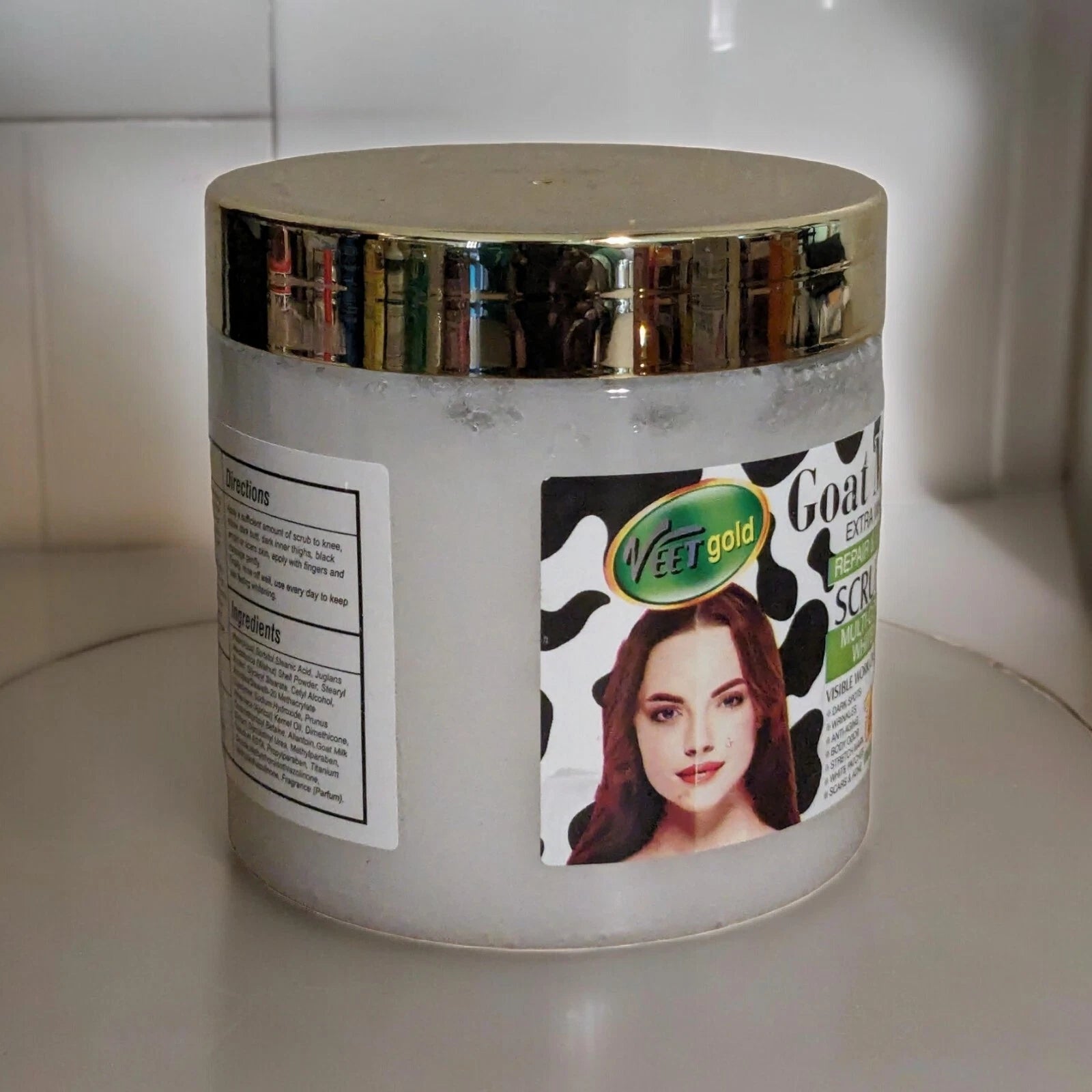 Veet Gold Goat Milk Face & Body Repair & Glowing Scrub (500ml) is a nourishing skincare product designed to rejuvenate and brighten the skin. Formulated with natural ingredients, this scrub aims to exfoliate dead skin cells, promote a radiant complexion, and improve skin elasticity.