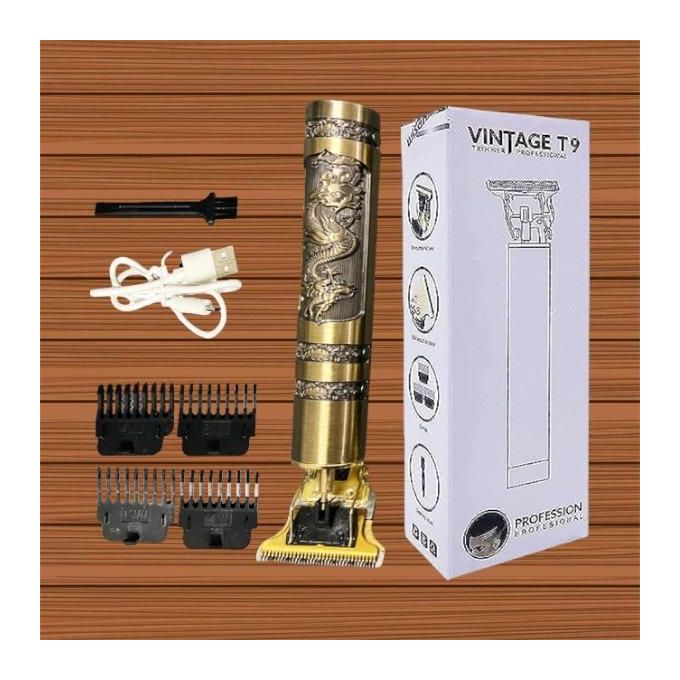 Step up your grooming game with the Vintage T9 Dragon Hair Clipper/Shaver, a stylish and powerful tool designed for precision and performance. With its classic gold dragon design, this cordless clipper combines vintage elegance with modern technology. Perfect for clean cuts, sharp fades, and detailed trimming, it's ideal for both professional barbers and at-home use.