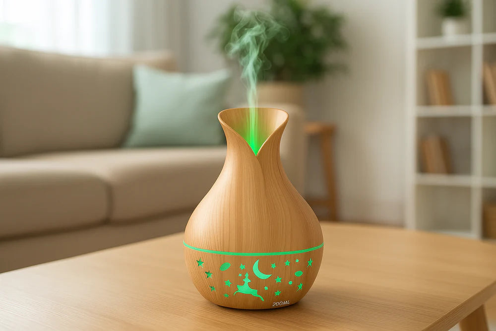 Wooden Small Vase Ultrasonic Humidifier – Natural Look, Quiet Comfort