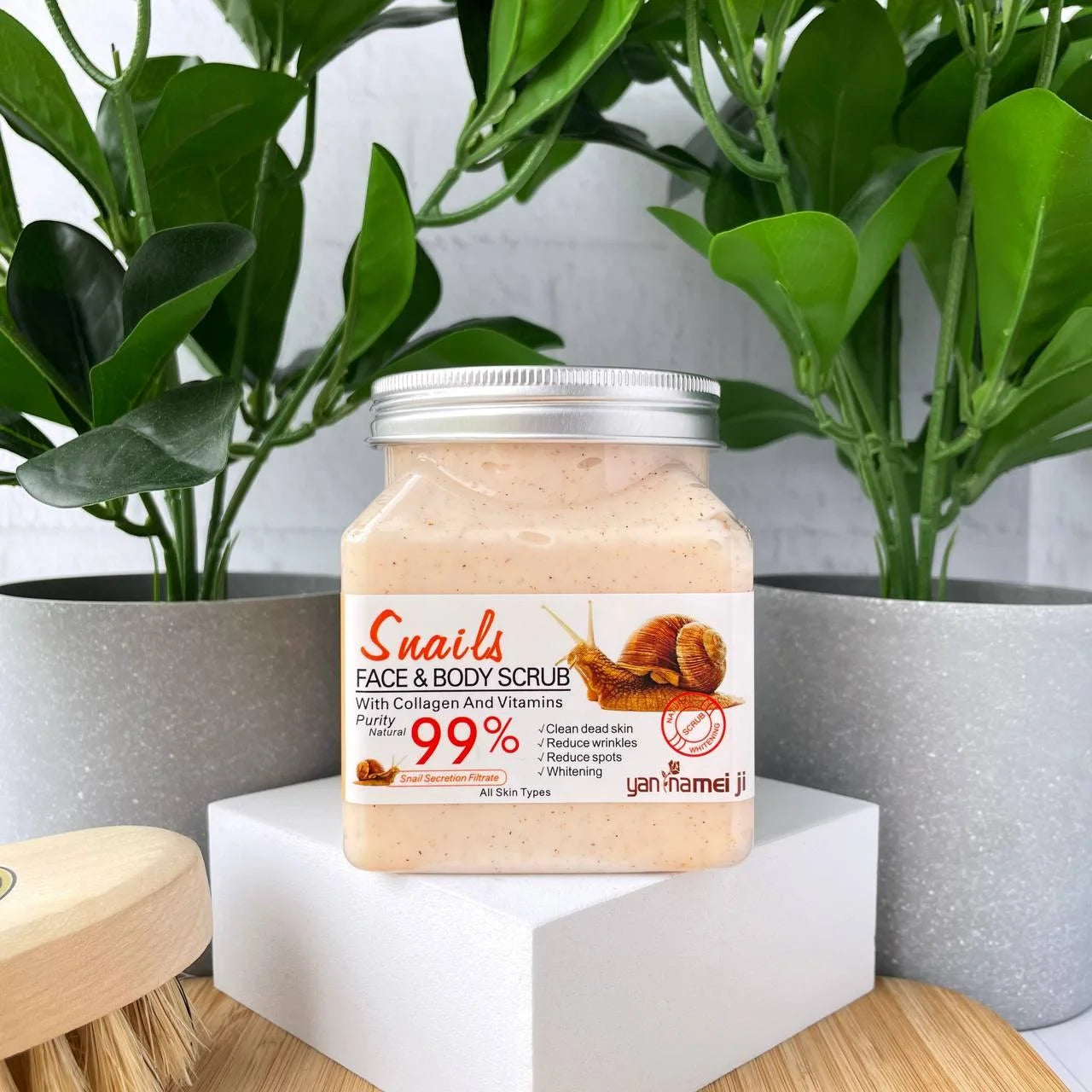 Yan Namei Ji Snail Face & Body Scrub combines exfoliation and skin repair in one step—perfect for achieving a smoother, more radiant complexion from head to toe.